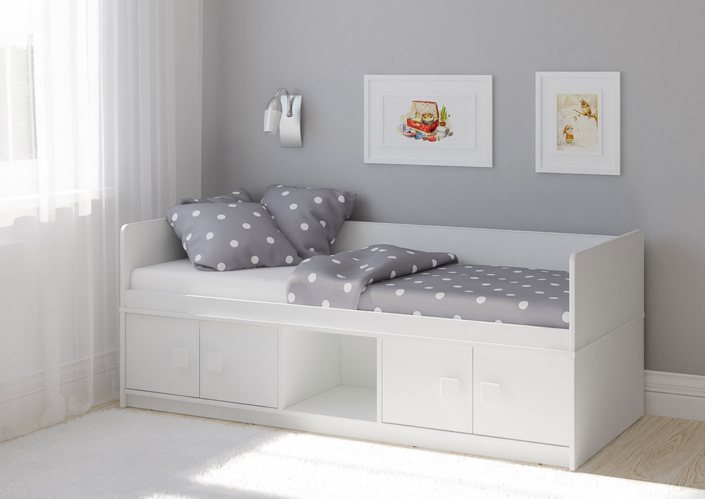 Кровать оборудована двумя местами хранения с 4-мя распашными дверями - прекрасные места для хранения игрушек!