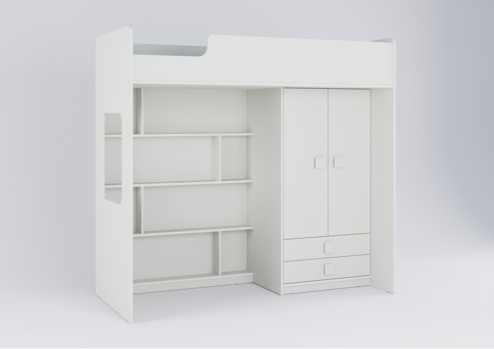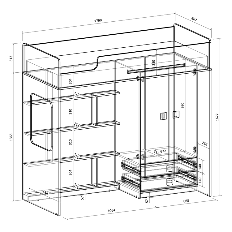 Вместительный шкаф для хранения одежды, белья,игрушек или иных вещей. Внизу шкафа располагаются выкатные ящики,в которых можно хранить отдельно мелкие предметы.Расположение ящиков позволяет ребенку легко извлекать необходимые вещи самостоятельно.